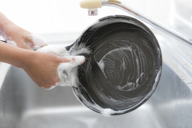 フッ素加工やセラミック加工のフライパンの洗い方の手順を確認しておきましょう。