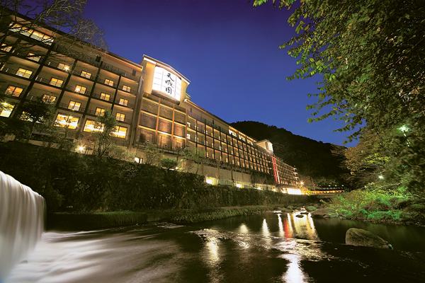 2009年にリニューアルオープンし、庭園にはパワースポットとしても有名な「玉簾の瀧」や「玉簾神社」があり、解放感あふれる屋上天空大露天風呂が自慢の温泉旅館です。
