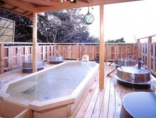 全客室、檜の露天風呂となっていて、食事は料理長自慢の四季折々の会席料理です。地酒やオリジナルのドリンクも楽しむことができます。